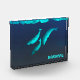 Cuenta con tres narwhales, Monodon monoceros. También aparece la lectura de texto en personalizable, NARWHAL". La ballena está relacionada con la ballena Beluga y vive en el Ártico durante todo el año. Se encuentran principalmente en las aguas de Groenlandia y Canadá, raramente al sur de los 65°N de latitud. Los machos pesan hasta 1.600 kilogramos (3.500 lb), las hembras pesan alrededor de 1.000 kilogramos (2.200 lb). El narguile más grande jamás encontrado pesaba 3.500 libras. Tienen forma de beluga y tienen unos cuatro centímetros de grasa aislante. Normalmente, las ballenas se congregan en grupos de entre cinco y diez individuos. En el verano, varios grupos se reúnen formando aglomeraciones más grandes. El narwhal se deriva de la palabra nár, que significa "cadáver", que se refiere a la pigmentación grisácea y moteada del animal, como la de un marinero ahogado. El narwhal es más oscuro cuando los jóvenes se vuelven más blancos con la edad. La característica más visible del narval masculino es su colmillo de 2-3 metros (7-10 pies) de largo torcido. Es un diente incisor que proyecta desde el lado izquierdo de la mandíbula superior y forma una hélice zurda. El nombre científico del narval, Monodon monoceros, se deriva de "una bocina con un solo diente". El colmillo puede ser de hasta 3 metros (9.8 pies) de largo, comparado con una longitud corporal de 4-5 metros (13-16 pies), y pesar hasta 10 kilogramos (22 libras). Aproximadamente uno de cada 500 machos tiene dos colmillos, que ocurren cuando el incisor derecho, normalmente pequeño, también crece. Una hembra narwhal también puede producir un colmillo, pero esto ocurre raramente, y hay un solo funda registrado de una hembra con doble colmillo. Se cree que este comportamiento mantiene jerarquías de dominación social. A veces, los narguiles machos frotan sus colmillos juntos en una actividad llamada "colofón". La razón de este comportamiento es desconocida; puede ser "rascar una picazón" (la base del colmillo suele estar infestada de piojos); o cruzar el colmillo puede ser un saludo amistoso. La teoría más ampliamente aceptada para el rol del colmillo es similar a la de un león o las plumas de cola de un pavo real. Puede ayudar a determinar el rango social, mantener jerarquías de dominación o ayudar a los jóvenes a desarrollar las aptitudes necesarias para el desempeño en funciones de adultos. Rara vez se han observado narices utilizando su colmillo para combatir u otro comportamiento agresivo o para romper el hielo marino en su hábitat ártico. El narwhal normalmente se desarrolla a un ritmo relajado, respirando lentamente y rodando, pero son notablemente rápidos cuando se sienten amenazados. A veces viajan en pequeños grupos familiares y se comunican a través de una gran variedad de chiles, trilladas, silbidos y clics. Los narcapales tienen una dieta relativamente restringida y especializada. Su presa está compuesta principalmente de fletán de Groenlandia, bacalao polar y ártico, camarón y calamar Gonatus. Entre otros elementos encontrados en los estómagos se encuentran el lobo, la capelina, los huevos para patinar y a veces las rocas, que se ingieren accidentalmente cuando las ballenas se alimentan cerca del fondo. Se desconoce cómo atrapan a sus presas. Algunos científicos creen que narwhal conmocionó a su presa con sonido como también a los delfines. El Narwhal muestra migraciones estacionales con alta fidelidad de retorno a terrenos de vertido preferidos sin hielo, generalmente en aguas poco profundas. En invierno, se encuentran principalmente en aguas submarinas, más profundas, bajo hielo gruesa manada, que surgen en fisuras estrechas en el hielo marino, o pistas. Narwhal de Canadá y West Greenland invierno regularmente en el hielo del Estrecho Davis y la Bahía de Baffin a lo largo de la vertiente continental con menos del 5% de agua abierta y densidades altas de fletán de Groenlandia. La alimentación en el invierno representa una porción mucho mayor de la ingesta de energía de narwhal que en el verano y, como depredadores marinos, son únicos en su exitosa explotación de los ecosistemas árticos de aguas profundas. La más notable de sus adaptaciones es la capacidad de realizar inmersiones profundas. Cuando en sus zonas de invierno, los narvales hacen algunas de las inmersiones más profundas jamás registradas para un mamífero marino, buceando a al menos 800 metros (2400 pies) más de 15 veces al día, con muchas inmersiones que llegan a 1500 metros (4500 pies). Las inmersiones a estas profundidades duran unos 25 minutos, incluyendo el tiempo que se pasa en el fondo y el tránsito hacia abajo y hacia atrás desde la superficie. En los terrenos de veraneo más bajo, los narvales se sumergen en profundidades de entre 30 y 300 metros. Los únicos depredadores de los narices además de los humanos son los osos polares y las orcas. A las personas inuit se les permite cazar legalmente esta especie de ballena para su subsistencia. El clima del norte proporciona poca nutrición en forma de vitaminas que sólo se pueden obtener mediante el consumo de foca, ballena y moras. Casi todas las partes del narval, la carne, la piel, la ubre y los órganos se consumen. Mattak, la palabra que significa piel cruda y grasa, se considera un manjar y los huesos se utilizan para herramientas y arte. En algunos lugares de Groenlandia, como Qaanaaq, se utilizan métodos tradicionales de caza y se arpan las ballenas a partir de kayaks hechos a mano. En otras partes de Groenlandia y el norte del Canadá se utilizan barcos de alta velocidad y rifles de caza. Si bien las poblaciones parecen estables, se ha considerado que el narval es particularmente vulnerable al cambio climático debido a una estrecha variedad geográfica y a una dieta especializada. Los relatos que han entrado en cautiverio tienden a morir rápidamente. En la leyenda inuit, el colmillo del narval se creó cuando una mujer con una c