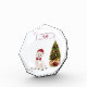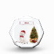 Esta raza de perro, un Westie está sentado al lado de un árbol de Navidad decorado. Esperando las vacaciones, este perro se ve humorístico con un sombrero de santa y corbata de arco rojo. Perfecto regalo para enviar a estos Navidades ya sea de o para un amante de los perros - ¡o sólo porque es gracioso!