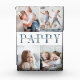 Crea un regalo dulce para un querido abuelo con este bloque acrílico vertical de cuatro collage de fotos. "Pappy" aparece en el centro con letras azules suaves, con el mensaje de su personalizado y los nombres de sus nietos puestos.