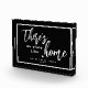 Este bloque de fotos presenta un fondo negro con texto en blanco que dice: "No hay lugar como el hogar" junto con un corazón pequeño y tu nombre personalizado, fecha establecida u otro texto.