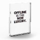 A powerful, modern typographical poster featuring the quote "Offline is the New Luxury." The design uses a bold, distressed glitch effect to convey the static and noise of the digital world versus the clarity of being present. Perfect for promoting mindfulness, mental health awareness, and intentional disconnection.