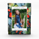 Muestra tu foto vertical en estilo con este colorido y moderno bloque de fotos, con bayas acuáticas y hojas sobre un fondo azul marino.