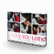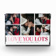 Crea tu propio bloque de fotos de familia con un collage de 5 fotos, las palabras "te amo mucho" en un degradado rosa/rojo, tus nombres y el año.