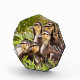 Una deliciosa variedad de crías de pato de mallard mira desde su suave césped al lado de un estanque tranquilo.