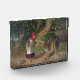 La pequeña capucha roja se encuentra con la pintura del lobo.