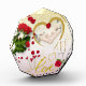 con fondo beige y rosa degradado y marco en forma de corazón dorado rodeado de sol dorado y rosas rojas.