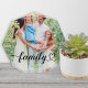 Moderno y elegante bloque de fotos de la mesa de personalizado presenta una foto favorita con un mínimo diseño de superposición de tipografía "familiar" que incluye detalles elegantes de flor y corazón. Se puede modificar el color del texto negro.