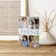 Crea un regalo dulce para un querido abuelo con este bloque acrílico vertical de cuatro collage de fotos. "GRANDPA" aparece en el centro con letras azules suaves, con el mensaje de su personalizado y los nombres de sus nietos superpuestos.