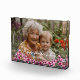 This pink floral Mother’s Day photo block features one personalized photo with elegant white script reading “Happy Mother’s Day Grandma”. The name “Grandma” can be customized to any title, making it perfect for Mom, Nana, or another special mother figure.