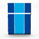 Este diseño deportivo presenta una colorida franja de carreras vertical azul cielo brillante, intersectada por una delgada franja horizontal blanca en el tercio superior del diseño. Las franjas exteriores son azul intenso y profundo.
