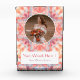Bloque de fotos de regalo de Boda de la Estrella Pink Peach Peach Peach Peach, personalizado. Personalice esto reemplazando la foto y el texto con sus propias palabras. Los colores cálidos, el rosa suave, el morado mudo y el estallido de un patrón geométrico moderno de durazno y melocotón rodean la foto de la novia, el novio o la pareja feliz. Una decoración de dopamina de tonos pastel y un regalo personalizado para mostrar en su sala de estar, su dormitorio de boho o su oficina residencial ecléctica. Celebra el mejor día de tu vida capturando a tus preciados y felices recuerdos de familia con este placer. También hace un gran regalo para los padres de los recién casados.