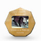 Agregue la fotografía del matrimonio, sus nombres y la fecha del aniversario de bodas para un recuerdo hermoso y significativo con este elegante bloque de fotos dorado. Un simple y elegante texto blanco que dice "celebrando 50 años" se puede editar a cualquier número para otro año de aniversario. La ilusión de brillo y luces brillantes se crea con un fondo degradado dorado. No es lámina de oro real, sino un efecto dorado bronceado. Esto haría un hermoso recuerdo para un aniversario de bodas de oro número 50 o una pieza central para una fiesta de aniversario.