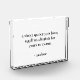 Añade tu cita corta favorita, diciendo o verso a este bloque acrílico tabletop. Un simple y hermoso accesorio de inspiración para tu oficina o casa. Añada el mensaje de su amigo, colega o ser querido para hacer un regalo personal y memorable que será apreciado en los próximos años.