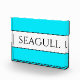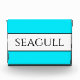 Este diseño costero presenta una elegante tipografía audaz dentro de una franja blanca resaltada sobre un fondo azul cielo brillante con "SEAGULL" escrito en el centro. Hazlo propio: el color de la banda y el color de fondo de este diseño se pueden personalizar/cambiar editando el diseño. El texto también se puede personalizar.