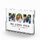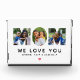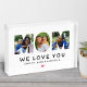 ¡Crea un regalo elegante y memorable para mamá este Día de la Madre o cualquier día! Este bloque de fotos de la mesa personalizado presenta un collage de tres fotos familiares favoritas de los niños diseñadas como un diseño moderno y audaz de tipografía sans serif. Personalice el texto personalizado con los nombres de los niños y modifique el texto negro, el corazón rosado y el fondo blanco si desea que los colores se coordinen con la decoración de su hogar.