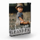Moderno bloque de fotos con la foto individual de un niño y el "Te amo abuelo" con letras modernas en un fondo gris. Hermoso regalo para los abuelos.