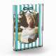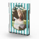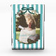 Teal green graduation with trendy stripes and ribbon bow. Photo template via Pixabay licensed under CC0 and must be replaced with your own photo.