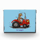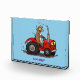 Esta graciosa vaca marrón está conduciendo un tractor rojo. ¡Mucha diversión para el granjero o amante de las vacas!