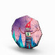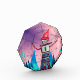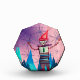 Dibujo acuarela con un robot, copos de nieve y montañas.
