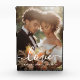 Photo block featuring your custom photo with white text overlay “love” in an elegant script font and the names and date below.