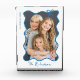 Esta moda y elegante cuenta con tu foto favorita en un marco ondulado azul de moda con una proa caprichosa, sobre un elegante fondo blanco. Añade tu nombre en escritura manuscrita moderna.