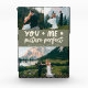 Whimsical and playful wedding keepsake featuring 3 photos of the newlyweds with a typography text that says "you + me = picture perfect." Sage green.