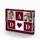 Un diseño colorido con 2 fotos familiares llenas de hermosos recuerdos de papá, en un fondo de rojo. Carga tus fotos para personalizar.