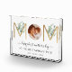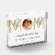 Diga feliz día de la madre con este dulce bloque de fotos, con un elegante diseño botánico con letras doradas y una foto reemplazando la letra 'O'. Las palabras 'feliz primer Día de la Madre' están escritas en elegante letra con el año apareciendo junto a la 'M'. Un encantador regalo de sake para el primer día de la madre.
