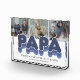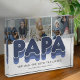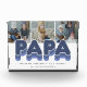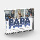 Moderno bloque de fotos familiares con 3 fotos cuadradas para que las reemplacen con las suyas, el título "PAPA", un dicho personalizado que dice "el hombre, el mito, la leyenda", y los nombres de los nietos.