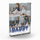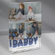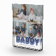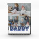 Bloque de fotos moderno de padre con 3 fotos familiares para que las reemplacen con las suyas, el título 'DADDY" con un audaz tipo de letra azul oscuro, y los nombres de los niños.