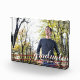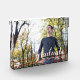 Moderno Bloque de fotos de graduados con rayas de maroon y oro perfecto para cualquier padre o abuelo del graduado. Diseño clásico, elegante y moderno. Personalizar con una foto del graduado y cualquier otro detalle de tu celebración.