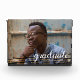 Moderno Bloque de fotos de graduados con rayas de oro y negro perfecto para cualquier padre o abuelo del graduado. Diseño clásico, elegante y moderno. Personalizar con una foto del graduado y cualquier otro detalle de tu celebración.