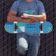 Patinaje abstracto azul de media tubería por © Cathy Thompson. Resumen de diseño azul, blanco y turquesa. Piensen en el próximo paseo en el tren. Diseño exótico y único. Guay Vibes.