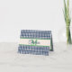 This cute monogrammed note card features a classic gingham plaid in shades of blue and cream and an accent of green. Personalize the monogram on the front with your choice of name and initial.