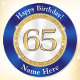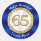 Azul barato de zafiro, Pegatinas de cumpleaños número 65 con su NOMBRE, FECHA de cumpleaños o TU TEXTO o Borrar. También puedes TRANSFERIRLO a MILES de otros suministros para fiestas de 65 años, decoraciones y regalos.