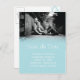 Esta simple tarjeta postal Save the Date Announement es perfecta para aquellas parejas que quieran acentuar sus nuevas fotos de compromiso. Aunque el ejemplo es en blanco y negro, la disposición es muy buena con las tomas de color al aire libre.
