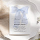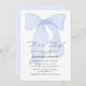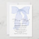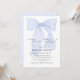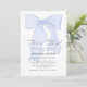 ¡Celebra la próxima llegada de un bebé con esta invitación de Baby Shower de Blue Bow! Con un hermoso arco ilustrado, suaves tonos pastel y una tipografía elegante, este diseño atemporal marca el tono perfecto para una celebración sofisticada y memorable. Personalízalo con tus detalles del evento para un toque único.