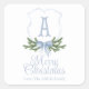 Hermosa etiqueta de regalo de pegatinas navideñas con un suave diseño escudo de Navidades azules, última personalización inicial y opcional de apellido