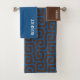 brown and blue abstract pattern custom name bath towel set .