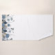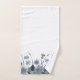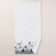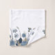 Elegante diseño de borde floral con flores azules y beige con tallos altos y hojas sobre un fondo blanco limpio, creando un aspecto suave, moderno y sofisticado.