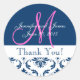 Blue Damask Wedding Gracias Pegatina
