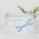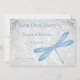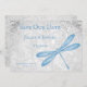 Personalice una invitación boda única con una libélula azul Guardar la fecha. El diseño de invitación presenta una libélula vibrante contra un elegante fondo de pardo floral y gris, y texto que puede personalizar con sus detalles de fecha boda. Además, guarde el anuncio de fecha disponible para este diseño en una variedad de colores. Si necesitas ayuda para la personalización, por favor contacta conmigo directamente.