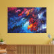 Arte abstracto contemporáneo rojo y maderero azul. Una colorida fusión de azules profundos y rojos llamativos en esta abstracta obra de arte contemporáneo evoca un sentido dramático de movimiento y energía.