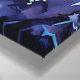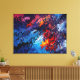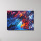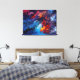 Arte abstracto contemporáneo rojo y maderero azul. Una colorida fusión de azules profundos y rojos llamativos en esta abstracta obra de arte contemporáneo evoca un sentido dramático de movimiento y energía.