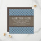 Fancy Lattice de moda y moda Salven los anuncios de fecha con un elegante círculo y un patrón de diamante relleno sobre un vibrante fondo azul oscuro con un amplio borde marrón de dos tonos. Esta elegante invitación a guardar la fecha es perfecta para anunciar a su boda moderno. Fácil de personalizar, simplemente agregue los detalles de su boda en los campos de texto proporcionados. Haga clic en "Personalizar" para encontrar más opciones de personalización.
