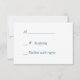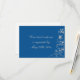 Hermosas imágenes de remolque de diamantes falsos crean un elegante borde en el lado derecho de esta tarjeta de respuesta boda. Los remolinos forman imágenes de hoja y corazón en plata purpurinoso con tu texto en plata en el medio. La parte posterior de la invitación es blanca para que sea más fácil para su encuestado marcar, con el texto personalizado en azul. *La imagen prediseñada utilizada en este diseño está protegida por derechos de autor por Encore Software, Inc., que permite su uso a sus licenciantes. Todos Los Derechos Reservados. Tenga en cuenta que la imagen está impresa y no contiene purpurina.