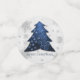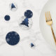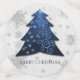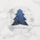 Mesas decorativas y mostradores para la familia se reúnen fiestas o fiestas con la mesa de árbol de Navidad azul festivo. El diseño de Confetti incluye un vibrante y festivo árbol de Navidad adornado con caídas de copos de nieve grises y blancos con un saludo de vacaciones. También hay artículos de regalo y de vacaciones disponibles con este diseño.