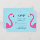 Este es el RSVP coordinador de la Invitación a la Boda de Playa Flamingo. Fun flamencos rosados con un acento de fondo azul claro esta tarjeta de respuesta, lo que lo hace perfecto para un evento temático de flamingo de verano, destino, boda tropical o de playa. En la colección Blue Flamingo Beach Wedding se pueden encontrar elementos de coordinación. Si necesita ayuda para personalizar esta invitación o necesita elementos de coordinación adicionales, simplemente contáctenos a prettyfancyinvites@gmail.com con su solicitud.