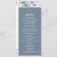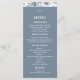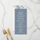 Bring timeless charm to your celebration with this personaized Chinoiserie Christian Wedding menu card, perfect for a Vintage Floral Wedding set in a romantic garden setting. This design features delicate dusty blue flowers, leaves, and butterflies arranged in a soft botanical style against a crisp white background, evoking the grace of Toile de Jouy patterns. The design showcases a stylish dusty blue background with a classic, elegant white modern and calligraphy script font, beautifully presenting your wedding menu in a refined and sophisticated way. With a heartfelt bible verse on the back, and ideal for a God-centered garden wedding or elegant French-inspired affair, this wedding menu card adds a graceful touch to your table setting.
