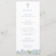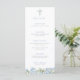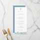 ¿Buscando un menú 4x9 azul floral para el bautismo de tu hijo? Estos menús con flores azules son fácilmente personalizables y perfectos para las mesas. Este menú editable de bautismo de este niño floral azul tiene un tamaño de 4 x 9 pulgadas. El menú STAVROS presenta un fondo blanco y una cruz acuarela compuesta por eucalipto verde pálido y flores azules suaves, combinado con una combinación de un tipo de letra clásico de sif y guión en gris y azul. Este menú floral azul se combina perfectamente con el bautismo de un niño floral azul.